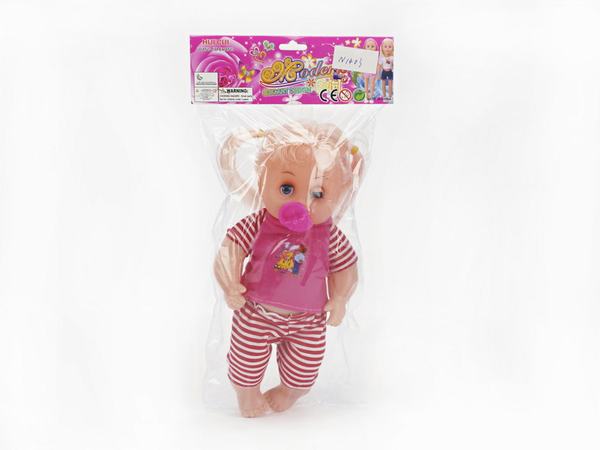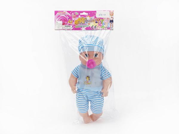 14寸弯脚条纹裤女娃+奶嘴音乐